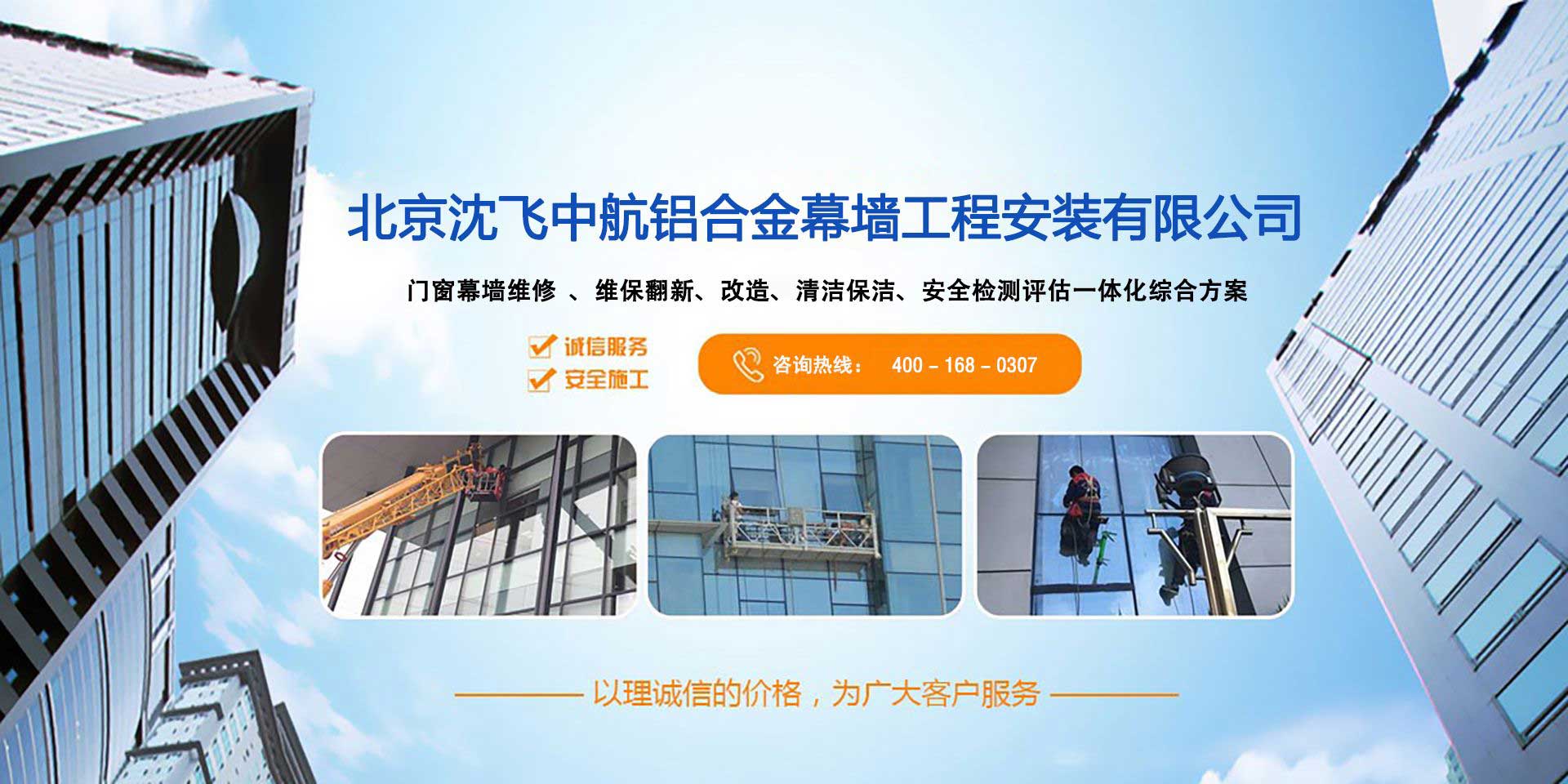 北京沈飛中航鋁合金幕墻工程安裝有限公司成立于2003年,注冊資金500萬,公司主要從事建筑門窗幕墻的設計、制造加工、安裝、售后為一體的專業(yè)化服務,公司成立以來為社會各界提供了優(yōu)質的服務。 為了滿足新老客戶及社會各界的需求,2005年公司在售后服務部的基礎上成立了專業(yè)的門窗幕墻維修、維保、保潔于一體的專業(yè)化公司,我公司以專心、專注、專業(yè)的服務宗旨,以客戶為中心的服務理念,以公司多年的設計、制造加工、安裝積累的經驗為依托,為社會各界提供了優(yōu)質的門窗幕墻維修維保服務。 與您一次的合作可能將成為終生朋友,公司領導及全體員工熱忱的期待與社會各界取得更為廣泛的合作,愿為廣大的客戶提供一流的服務,為美化城市做出更大的貢獻。